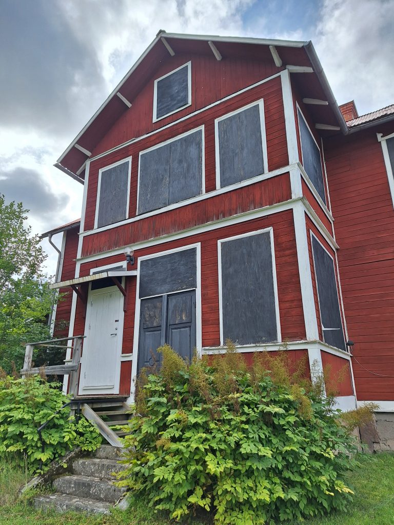 Ett enormt rött trähus med vita knutar reser sig mot Hälsingehimlen. Den magnifika byggnaden hyser Djurskyddet Bollnäs Ovanåkers katthem.
