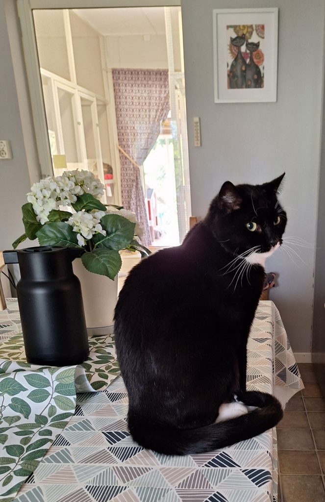 Utanför köksfönstret sänker sig eftermiddagssolen. Loke kliver in i sin lilla tygigloo på soffan. Sixten har slutat skramla. Vilostunden på katthemmet kan börja.