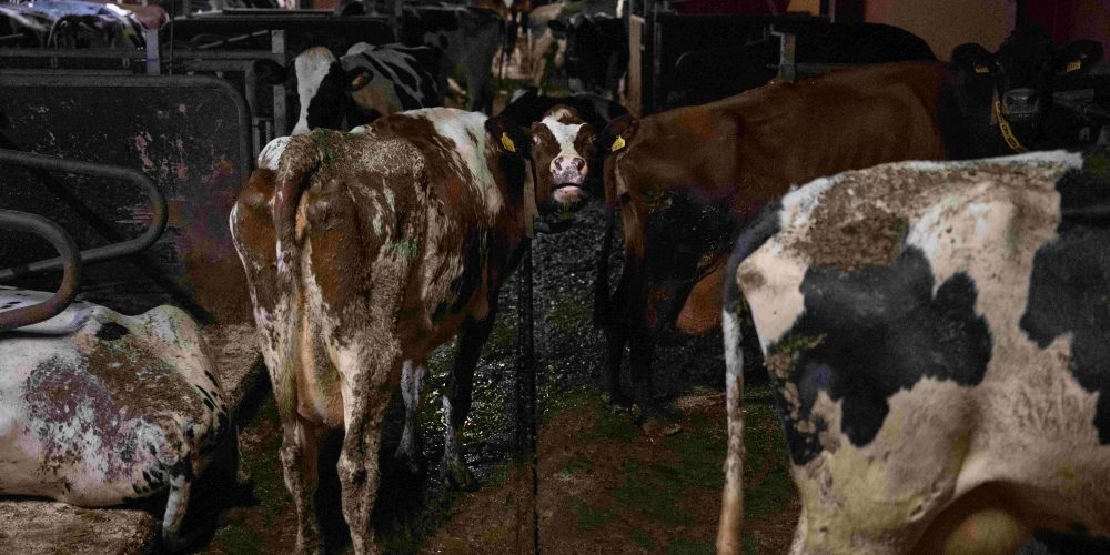 Personalen slår, sparkar och hoppar på en ko som ligger ner inne i stallet. Hon kan inte komma upp. Tack vare Djurrättsalliansens smygfilmning inifrån gården har regelbunden misshandel och svår vanvård av kor och kalvar på en öländsk gård som levererar mjölk till Arla avslöjats.