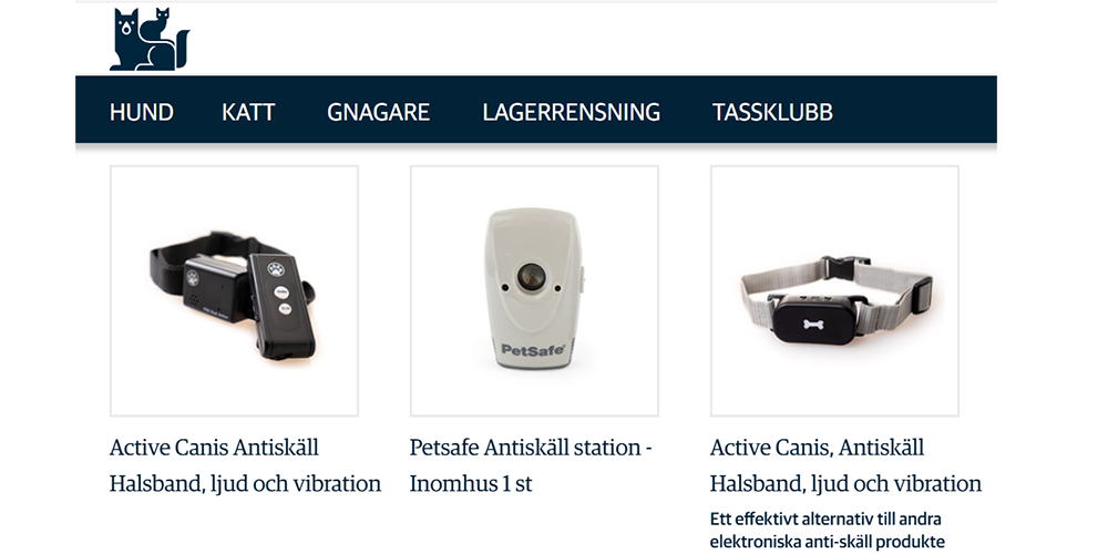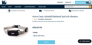 Antiskallhalsbanden såldes i webbshopen, där man också kunde ”chatta med en veterinär”.